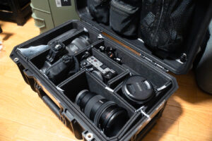 ※写真は、SONY FX3、5インチモニター、レンズ計3本(16-35、24-70、70-200)、ガンマイク、機材清掃用具、ケーブル類、バッテリー類 等を入れています。